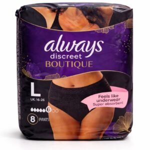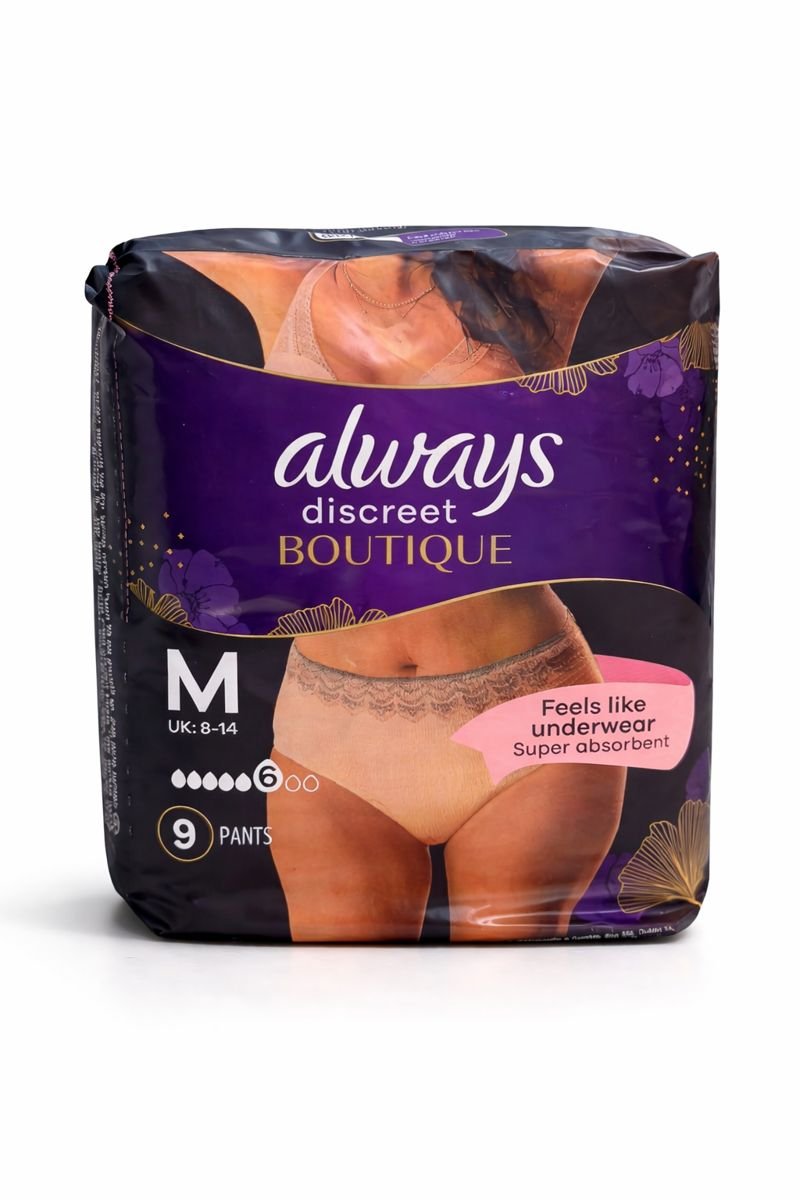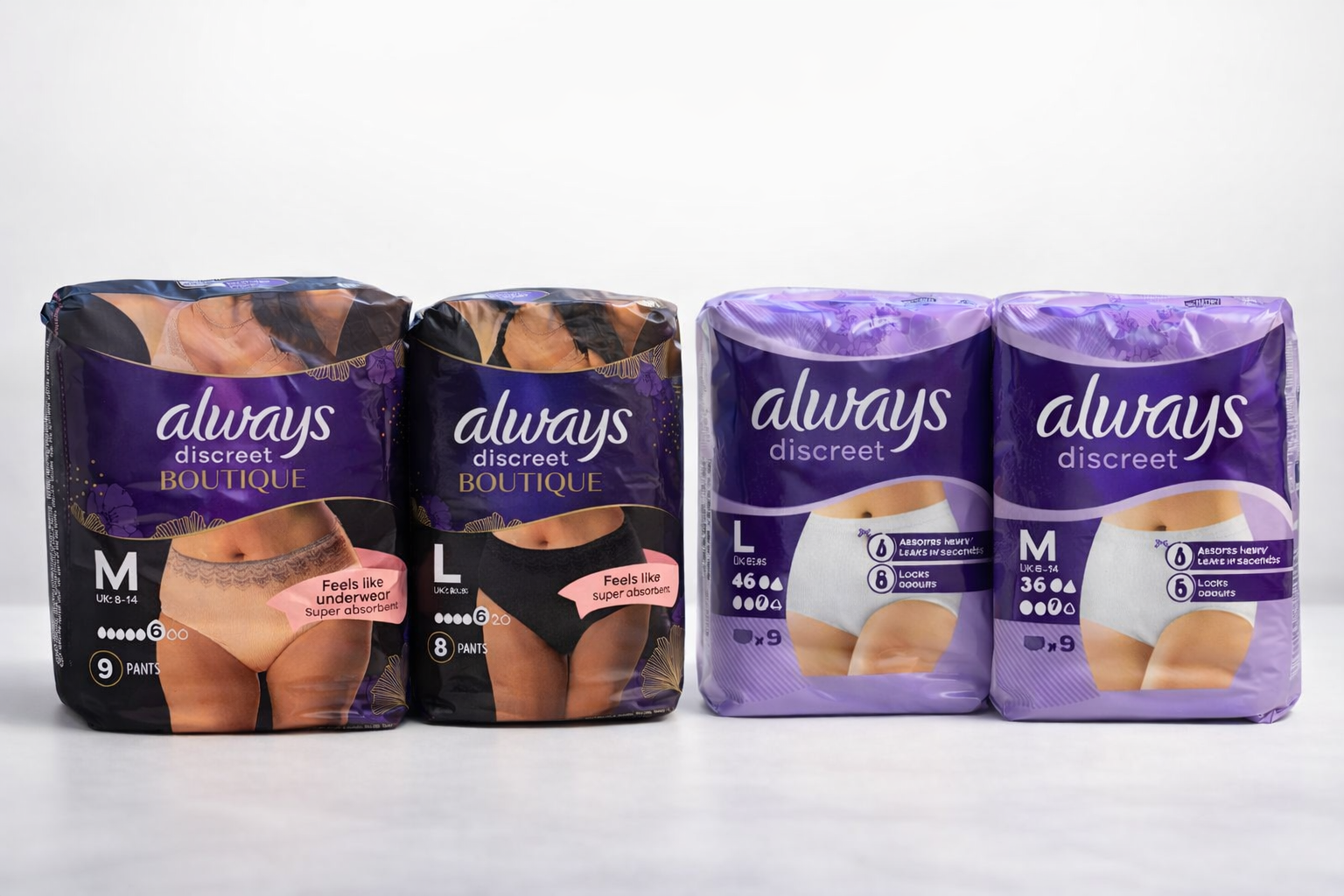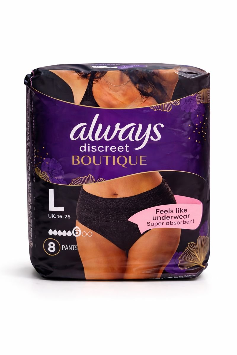 فوط Always Discreet مصممة لتمنحك إحساس وشكل الملابس الداخلية العادية—عشان تعيشي يومك بثقة وراحة طوال اليوم.